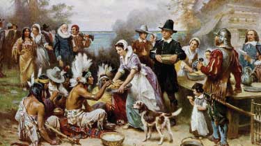In November, Americans celebrate Thanksgiving. It all started way back in 1621 when English settlers, called Pilgrims, celebrated after their first successful harvest in the New World. The three-day feast took place in Plymouth, Massachusetts. About 50 Pilgrims were there along with about 90 members of the Wampanoag Indian tribe.